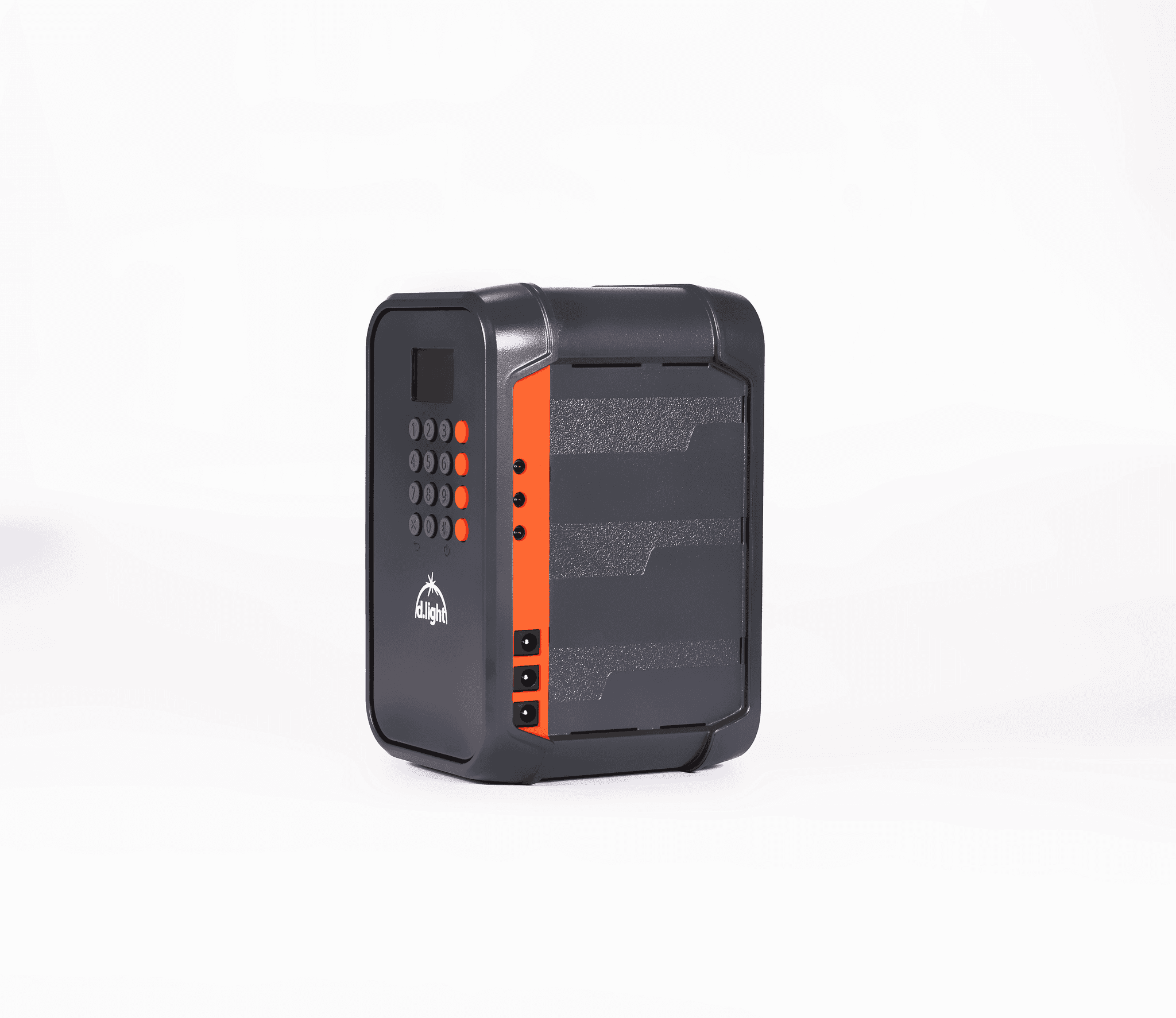 The d.light X1000 Pro is a versatile solar home system built for homes and small businesses. Powered by a 40W polycrystalline solar panel and a 128Wh LiFePo4 battery, it delivers up to 100 hours of light on its lowest setting—100x brighter than kerosene. The system includes five solar lights - one tube light, three bulbs, and a motion-sensor security light with daisy-chaining switches for easy control in different rooms. The device is equipped with 3 USB port that can charge the mobile phone. d.light X1000 Pro supports appliances like a TV up to 32 inches and a stand or table fan, making it a complete off-grid energy solution. With PayGo technology for affordable installments, the X1000 Pro offers clean, reliable power and comes with a 2-year limited warranty.